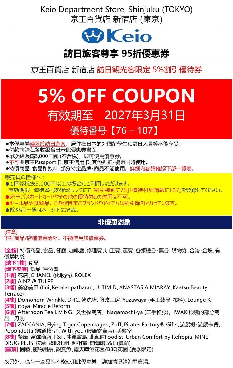 MYPACEMARKET尖沙咀店26年3月休息日如下: